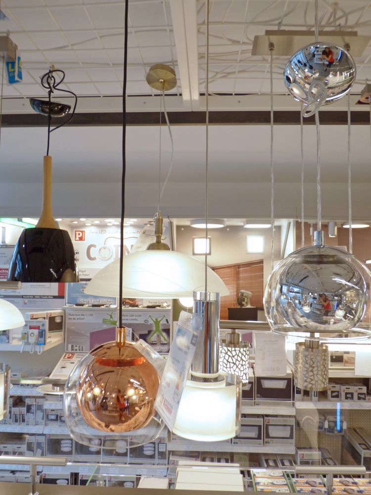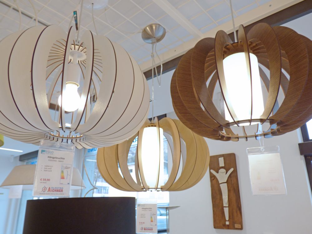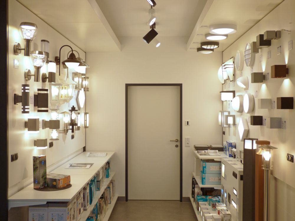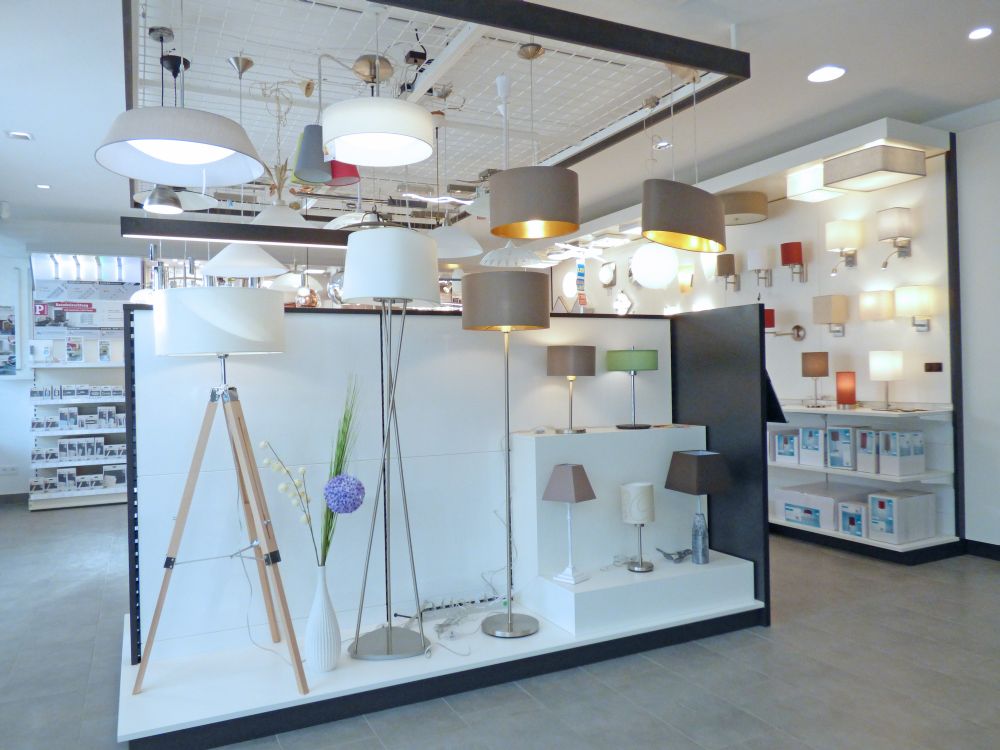 Anstatt unpersönlicher Katalogabbildungen bietet die ansprechende Präsentation verschiedener Leuchten in unserem Schauraum unseren Kundinnen und Kunden die Möglichkeit, sich diese vor Ort anzuschauen und sich ein konkretes Bild über deren Wirkung im Wohnraum zu machen.