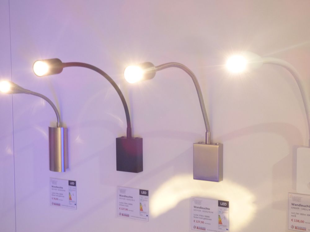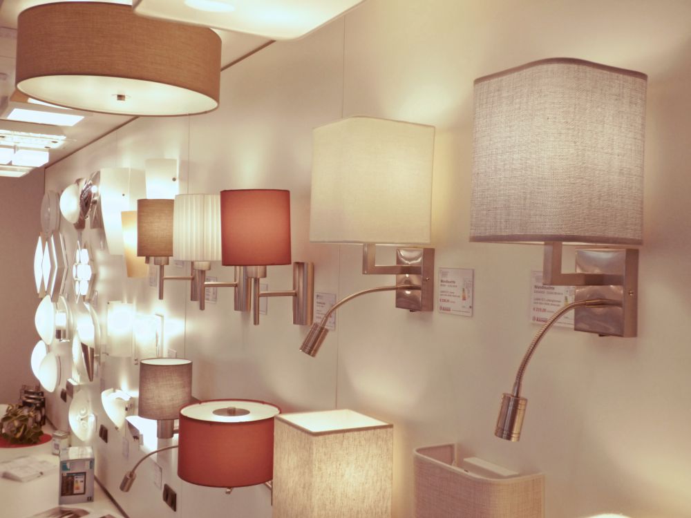 Die ausgestellten Produkte decken alle Wohnbereiche und Geschmäcker ab: von modern bis rustikal, von günstig bis hochwertig, von Stehleuchten bis hin zu Einbauspots. Das Angebot beinhaltet sämtliche Wohnraumleuchten (Küche, Wohnen, Bad, Schlaf- und Kinderzimmer), Außenbeleuchtung und Objektbeleuchtung (Hotel, Gastronomie, Shop-Beleuchtung).