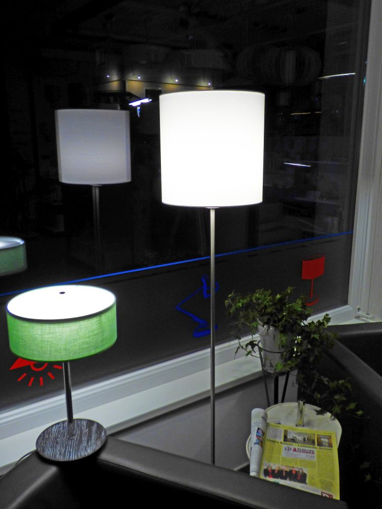 Anstatt unpersönlicher Katalogabbildungen bietet die ansprechende Präsentation verschiedener Leuchten in unserem Schauraum unseren Kundinnen und Kunden die Möglichkeit, sich diese vor Ort anzuschauen und sich ein konkretes Bild über deren Wirkung im Wohnraum zu machen.